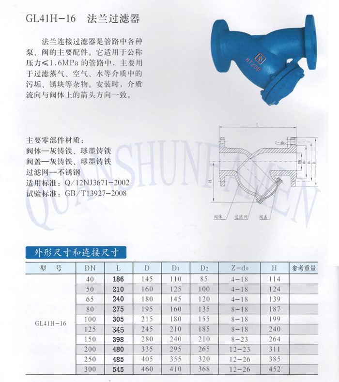 GL41H-16 法兰过滤器
